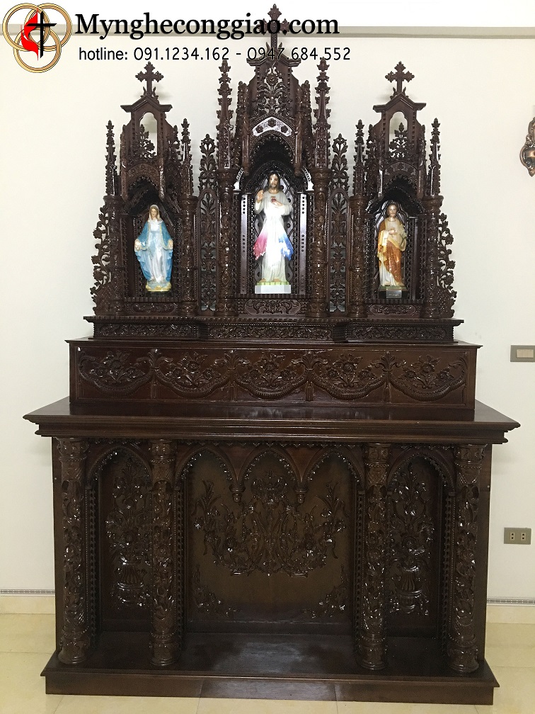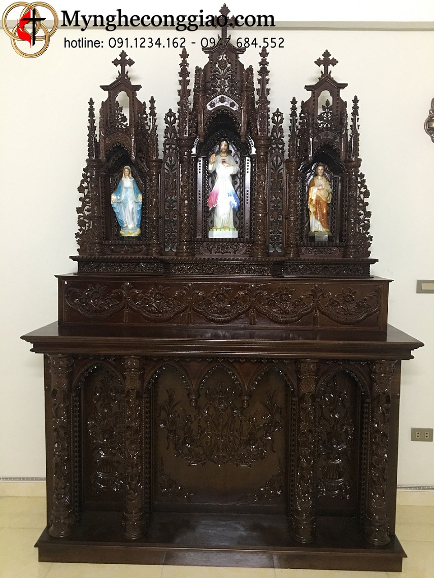 Sản phẩm Bàn thờ Gia Đình Công Giáo MS :04MC được sản xuất bằng chất liệu gỗ dổi bắn màu ,chất lượng đảm bảo gỗ đã được qua công nghệ sấy,không mối,không mọt.Quy trình sơn dầu đánh bóng được sử dụng nhưng loại sơn tốt nhất hiện nay,đảm bảo không bong sơn,không phai màu.