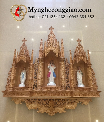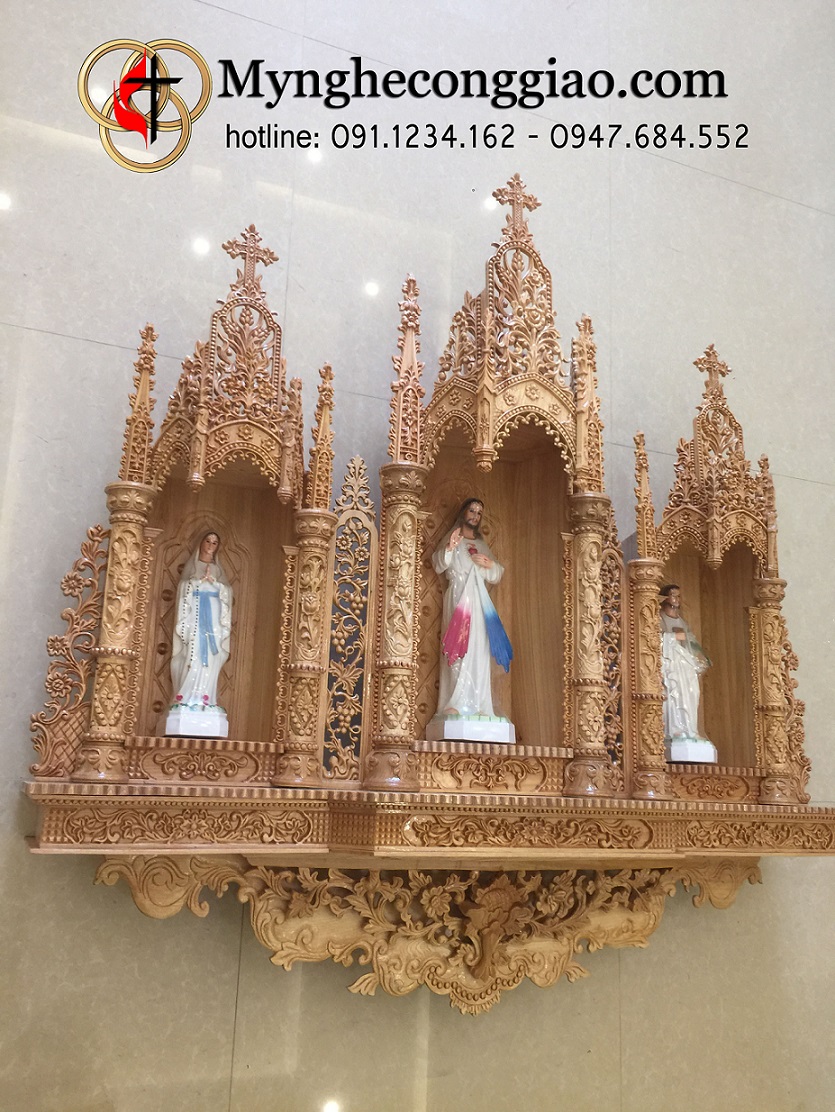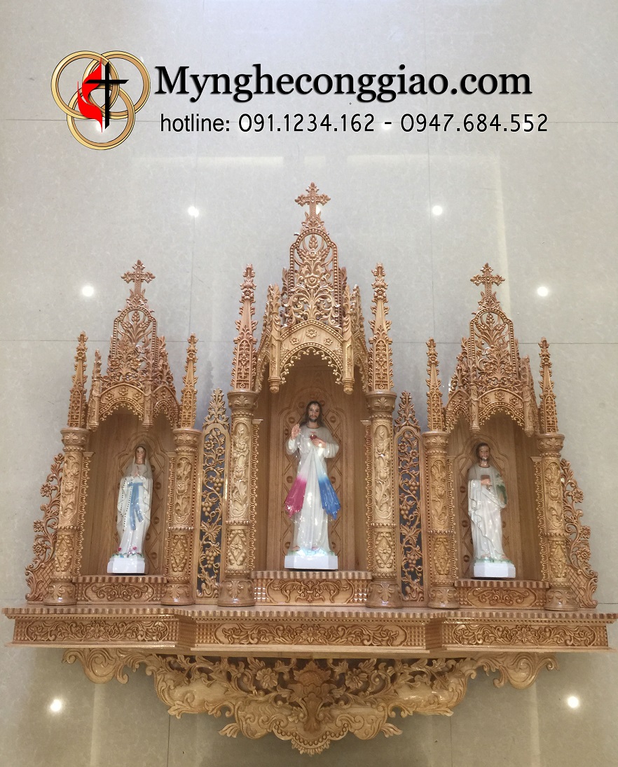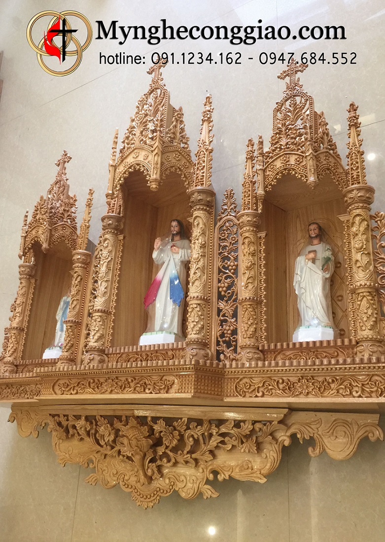 Xưởng mỹ nghệ Công Giáo (Tuyết Chinh)chuyên sản xuất và cung cấp các sản phẩm Công Giáo như: Tương Gỗ Công Giáo,bàn thờ Công Giáo,Tòa đục sơn son thiếp vàng - bạc,Đồ dùng trong phụng tự(Bàn lễ-Giảng đài-Ghế chủ tế-Nhà tạm-Kiệu...) và các sản phẩm gỗ các loại...