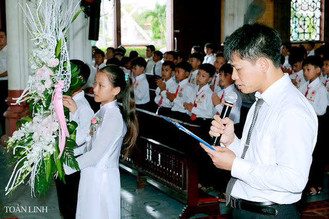 Trước khi kết thúc Thánh lễ, một vị đại diện dâng lời tri ân Thiên Chúa, cảm ơn Đức Cha, Cha xứ, quý Cha, quý Thầy, quý Sơ, quý ông bà quản, các anh chị giáo lý viên, quý bậc phụ huynh cùng toàn thể cộng đoàn đã về đây, hiệp dâng Thánh lễ tạ ơn và cầu nguyện cho các em trong ngày hồng phúc hôm nay.