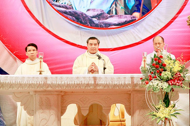 Chia sẻ thông điệp trong đêm Giáng sinh, Cha xứ Giuse Trần Quốc Tuyến chủ tế nói lên điều mà Giáo Hội mong muốn nơi con cái của mình rằng: Khi mừng Lễ Giáng Sinh chúng ta không chỉ điểm trang bằng những thứ bề ngoài, nhưng điều cốt yếu là chuẩn bị một tâm hồn xứng đáng tựa như hang đá ấm êm, để Hài Nhi Giêsu ngự vào, từng người, từng gia đình trong Giáo xứ. Ngài còn mời gọi Cộng đoàn hiện diện dõi mắt nhìn và chiêm ngắm gia đình Nazareth. Sự khiêm nhường của Thánh Gia, sự đơn sơ, nghèo khó là tấm gương sáng để mỗi gia đình trong Giáo xứ noi theo bắt chước. Mẹ Maria thì suy đi nghĩ lại trong lòng, âm thầm, khiêm cung, dẫu biết rằng mình mới hạ sinh Đấng Cứu Thế. Thánh Giuse, người là Đấng công chính, luôn âm thầm vâng theo thánh ý Thiên Chúa trong mọi biến cố của cuộc đời. Ngắm nhìn Hài Nhi Giêsu bé thơ trong máng cỏ, Ngài là Thiên Chúa, nhưng đã hạ sinh trong cảnh nghèo hèn, nơi hang bò lừa hoang vu lạnh giá, để sẻ chia thân phận con người. Mầu nhiệm Nhập thể là minh chứng tình yêu cứu độ tuyệt vời của Thiên Chúa dành cho nhân loại trong cảnh lầm than, tội lụy.