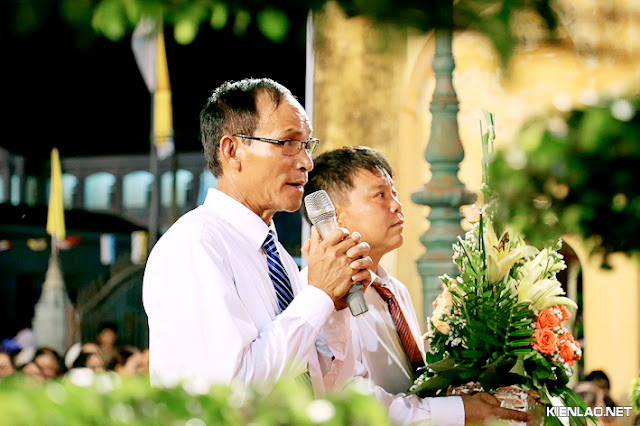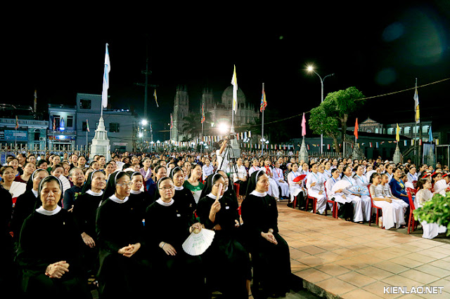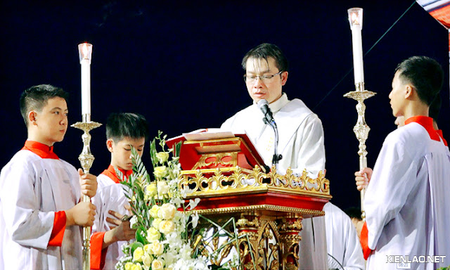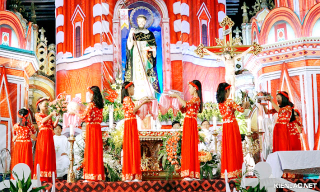 Ngay sau hồi chuông báo ban chiều, cha xứ đặt Mình Thánh và cộng đoàn sốt sắng tôn thờ Chúa Giêsu nơi Nhiệm Tích Thánh Thể. Đúng 18h00, cuộc cung nghinh thánh Quan thầy và rước đoàn lễ nghi cách trọng thể từ thánh đường Giáo xứ về lễ đài Giáo họ, chuẩn bị cử hành thánh lễ Tạ ơn kính mừng thánh Đaminh bổn mạng.Cha quản hạt chánh xứ Giuse Trần Quốc Tuyến chủ tế 20 Cha đồng tế, tham dự thánh lễ có quý Thầy,quý Dì rất đông anh chị em giáo dân hai giáo xứ Kiên Lao và Thánh Danh tham dự.