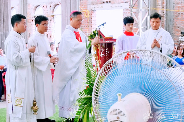 Mở đầu thánh lễ, Đức Cha kêu mời mọi người tạ ơn Thiên Chúa và cầu nguyện cho các đấng bậc cũng như quý vị ân thân nhân cũng như cho tất cả mọi người đang cộng tác trong công việc xây dựng ngôi thánh đường. Ngài cũng xin Thiên Chúa hoàn thành những gì đã khởi sự nơi Giáo họ Phêrô nhỏ bé này và xin Ngài luôn gìn giữ để công việc tốt đẹp này được luôn diễn ra trong bình an theo thánh ý Chúa.