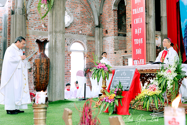 Trước khi Đức Cha làm phép viên đá, Cha chánh xứ Giuse Trần quốc Tuyến đã trình bày khái quát về tình hình giáo họ cũng như nhu cầu khẩn thiết cần phải xây dựng ngôi thánh đường mới. Với quá trình phát triển, số giáo dân ngày một gia tăng, ngôi thánh đường cũ đã xuống cấp không đủ đáp ứng nhu cầu sinh hoạt và mục vụ hiện tại. Do đó, cha xứ và Cộng đoàn đã đồng tâm hiệp lực, chung tay quyết tâm xây dựng một ngôi thánh đường mới, sau khi đã xin phép Đức Giám mục địa phận. Ngôi nhà thờ đang được xây dựng được làm bằng bê tông cốt thép, với chiều dài 36m, rộng 11,7m,cao10,6m, hai tháp cao 19m.
