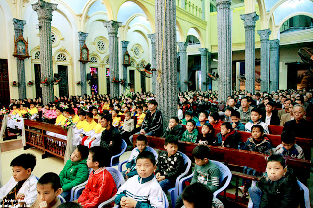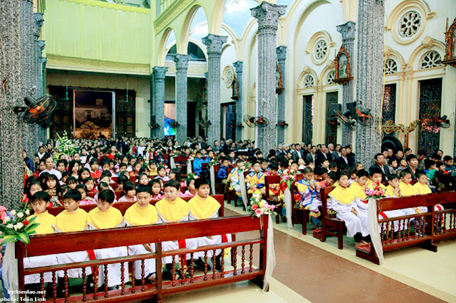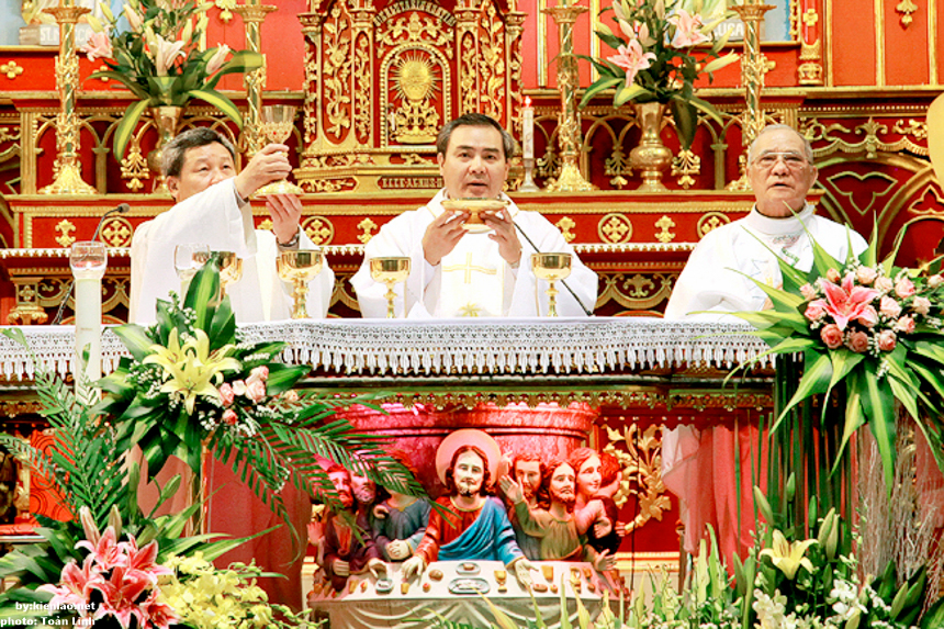 Mỗi Thánh lễ lớn tại Giáo xứ Thánh Danh không thể thiếu vắng các cuộc rước. Các cuộc rước không chỉ thể hiện nét đẹp truyền thống của các xứ đạo, mà còn góp phần làm cho ngày đại lễ thêm phần trang trọng, linh thiêng và sốt sắng. Cũng vậy, chiều nay trước khi bước vào Thánh lễ đồng tế, Giáo xứ đã tổ chức cuộc rước kiệu cách trọng thể, để tôn kính Thánh Danh Chúa Giêsu trong ngày Bổn mạng hôm nay.