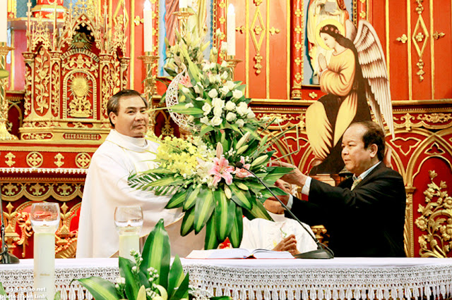 Chia sẻ niềm vui ngày lễ quan thầy, Giáo xứ hân hoan chào mừng sự hiện diện của, Cha Quản hạt chánh xứ Giáo xứ Đền thánh Kiên Lao và cũng là cha chủ tế,quý Cha giáo, quý Cha, quý tu sĩ nam nữ và đông đảo Cộng đoàn Dân Chúa cùng sốt sắng hiện diện.
