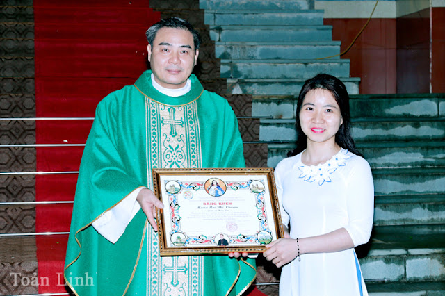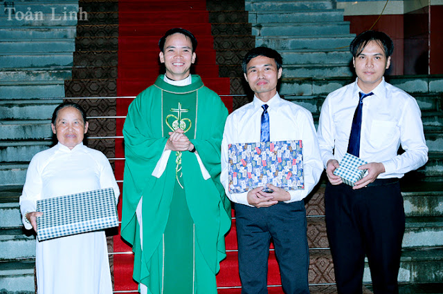 Trước khi kết thúc thánh lễ Cha chánh xứ Giuse Trần Quốc Tuyến đã trao bằng cho những anh chị em đã hy sinh góp phần vào việc dậy giỗ các em suốt 10 năm qua.