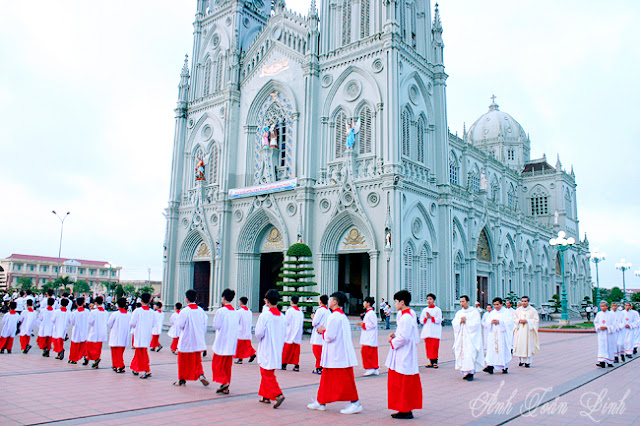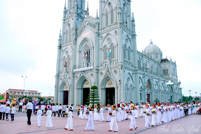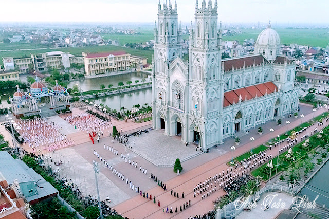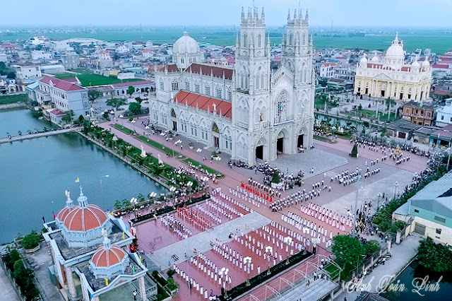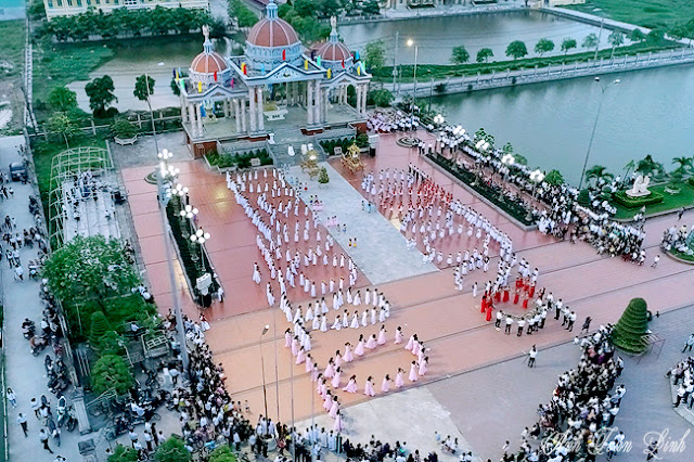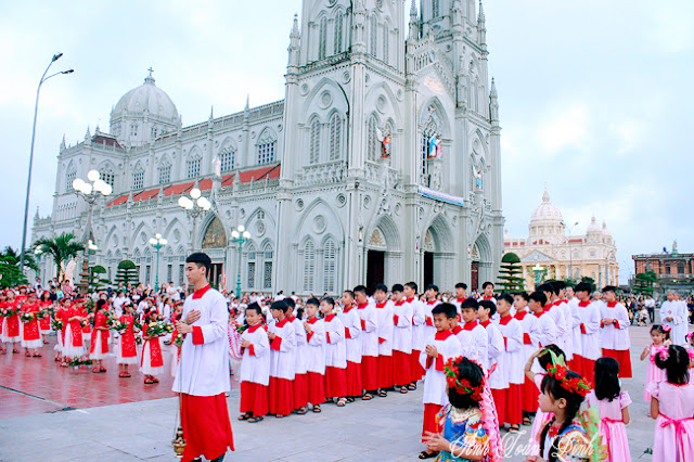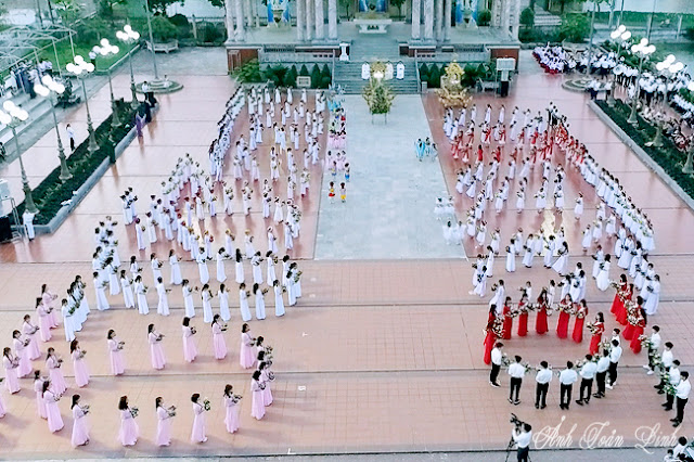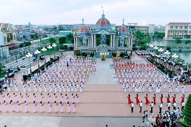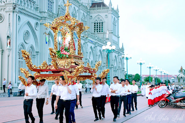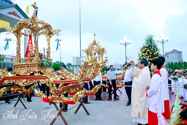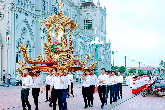 Ngay từ 17h30, hội hoa của các Giáo họ, các đoàn hội cầu nguyện trong Giáo xứ trong toàn Giáo xứ, cùng với hội kèn, hội trống và hàng chục ngàn tín hữu đã tề tựu đông đủ trước thánh đài Lòng thương xót Chúa, chuẩn bị sẵn sàng cho cuộc cung nghinh trọng thể Đức Mẹ và thánh cả Giuse, quanh khuôn viên Đền thánh. Chiều nay là dịp hội tụ của những người con thiết tha yêu mến Mẹ, thành kính dâng Mẹ những đóa hoa cuộc đời mỗi người.