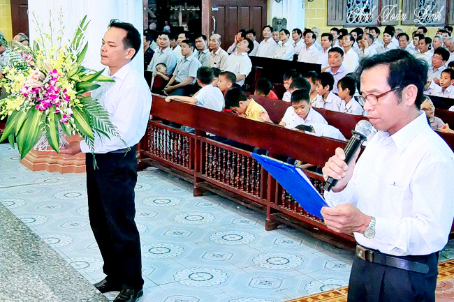 Hiện diện trong Thánh lễ mừng Bổn Mạng các gia trưởng Giáo xứ Kiên Lao có cha chính Giáo phận Giuse Nguyễn Đức Giang,cha xứ Giuse Trần Quốc Tuyến,quý cha Cố, cha quản lý Giuse Trần Hưng Đạo, cha giám đốc Học viện Tê rê sa Avila Vũ Ngọc Tứ và quý cha,cha Giuse Phạm Văn Thanh cùng đông đảo quý tu sĩ nam nữ và cộng đoàn.