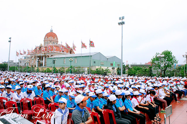 Sau những giờ phút đón chào và sinh hoạt chung với những cử điệu sôi động, đầy sức sống của các bạn trẻ, đúng 7h15, cha Quản Hạt Bùi Chu và cũng là cha xứ Giáo xứ Đền thánh Kiên Lao Joseph Trần Quốc Tuyến chính thức khai mạc Đại hội với đôi lời chia sẻ tâm tình với các bạn trẻ.