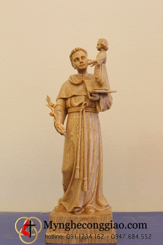 Sản phẩm Thánh Anton MS:3 được sản xuất bằng chất liệu Pơmu tự nhiên,chất lượng đảm bảo gỗ đã được qua công nghệ sấy,không mối,không mọt.Quy trình sơn và được sử dụng những loại sơn tốt nhất hiện nay,đảm bảo không bong sơn,không phai màu.