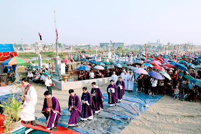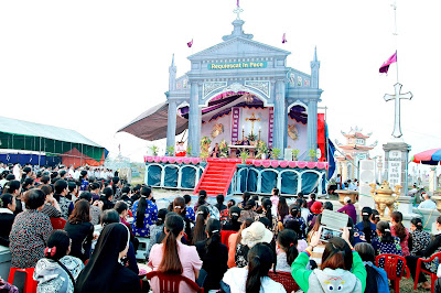 Trước thánh lễ, Đoàn lễ nghi từ khuôn viên Giáo họ Đức Thánh tiến ra khu vực thánh địa. Cha chánh xứ mời gọi Cộng đoàn cùng sốt sắng dâng lời tạ ơn Thiên Chúa, thành tâm tưởng nhớ và tri ân các bậc tổ tiên ông bà, cha mẹ, những người thân yêu, dâng lời cầu nguyện cách tha thiết cho các linh hồn sớm được hưởng tôn nhan Chúa.