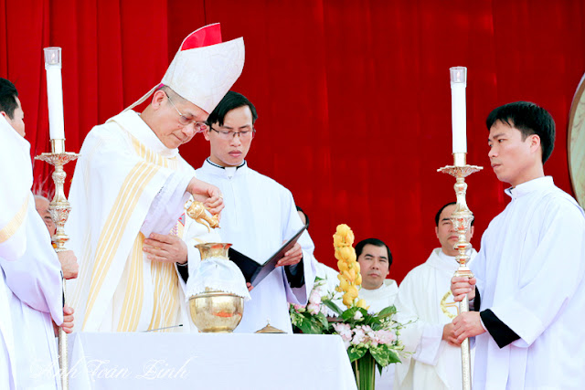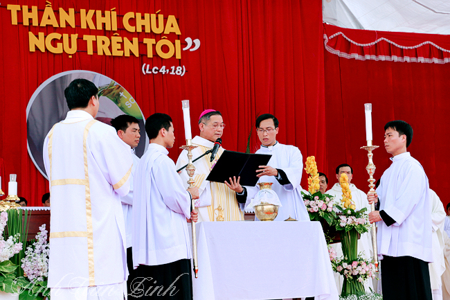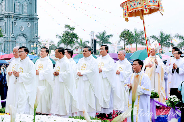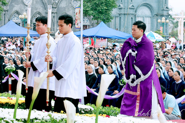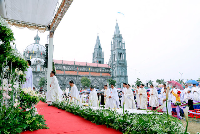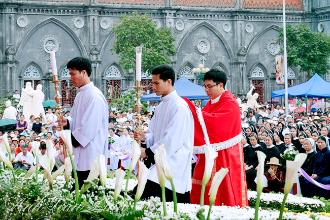 Sáng thứ Năm Tuần Thánh luôn là ngày đặc biệt đối với người tín hữu Bùi Chu. Bởi mỗi năm duy nhất một lần và mỗi lần duy nhất một xứ được Đức Cha tin tưởng trao trách nhiệm tổ chức đại lễ Truyền Dầu. Năm nay cả Giáo phận hướng tâm hồn về Hải Nhuận – một giáo xứ thuộc vùng quê Hải Hậu, được thành lập vào năm 1937, dưới thời Đức Cha cố Đaminh Maria Hồ Ngọc Cẩn coi sóc. Khuôn viên Giáo xứ Hải Nhuận hôm nay thật chật hẹp, bởi lượng bà con giáo dân tiến về đây mừng lễ lên đến cả chục ngàn người. Không khí ngày đại lễ này đặc biệt đến nỗi chỉ những ai hiện diện mới có thể cảm nhận được tất cả vẻ đẹp thánh thiện với tất cả giá trị thiêng liêng của ngày hồng phúc.