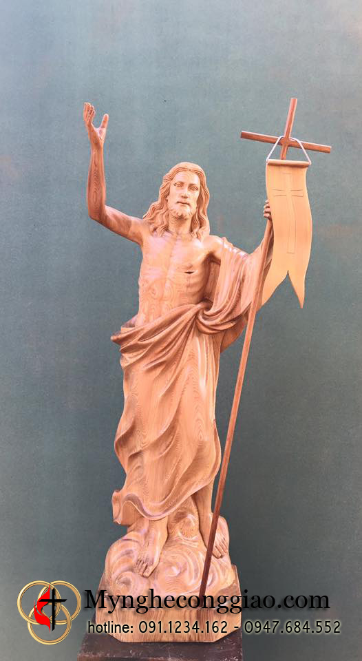Sản phẩm Tượng Chúa Sống Lại MS: 33 được sản xuất bằng chất liệu Pơmu tự nhiên,chất lượng đảm bảo gỗ đã được qua công nghệ sấy,không mối,không mọt.Quy trình sơn và được sử dụng những loại sơn tốt nhất hiện nay,đảm bảo không bong sơn,không phai màu.